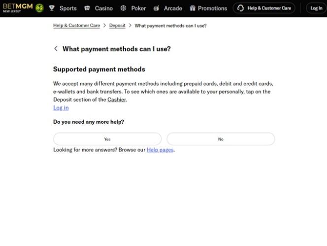 خيارات الخدمات المصرفية في BetMGM Casino NJ
