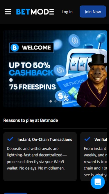 للوصول الكامل إلى محتوى المقامرة المتاح، بالإضافة إلى جميع ميزات الكازينو الأخرى، ستحتاج إلى الانضمام إلى كازينو Betmode. يمكنك القيام بذلك بسهولة عن طريق ربط محفظتك الرقمية، أو التسجيل باستخدام بريدك الإلكتروني، أو إنشاء حساب جديد باستخدام منصات شهيرة مثل Telegram وGoogle وX.