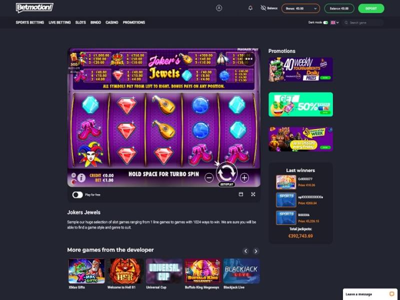لا يقدم كازينو Betmotion حاليًا نقاطًا مجانية للاعبيه.معلومات الترخيص