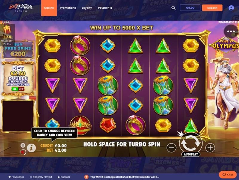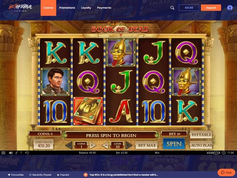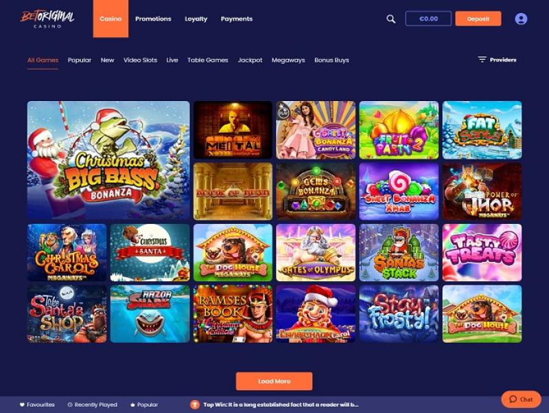 تتميز BetOriginal بالعديد من عناوين الفتحات الشهيرة: Lucky Dragons، وGo! قرد، لعبة Dwarven Gold Deluxe، لعبة Hot Safari، صالون تجميل، لعبة Dice and Fire، لعبة Sugar Rush، لعبة Carnival of Venice، لعبة Ducks and Eggs، لعبة Tales of Egypt، لعبة Grave Grabbers، لعبة Lady Godiva، لعبة Voyager's Quest، لعبة Lucky Day at the Races، لعبة Slot Dunk، لعبة Lucky Fishing، لعبة Quest for the Minotaur، لعبة Mad Orchestra، لعبة New Tales of Egypt، لعبة Shia Safavids، لعبة Redbeard & Co.، لعبة Reel Gangsters، لعبة Glorious Rome، لعبة Cool Stone Age، لعبة Religion of Champions Brasil، لعبة Summer Party، لعبة Transylvania، لعبة Witches Cauldron، لعبة Magic Crystals، لعبة Black Diamond، لعبة Happy Circus، لعبة Ocean Fantasy، لعبة Graveyard Shift، لعبة Dwarven Gold، لعبة Bingo Slot، لعبة Fruit Slot، لعبة Merry Bells، لعبة Forest Frenzy، لعبة Lost Inca's Gold، لعبة Lotto Mania، لعبة Orbital Mining، لعبة Great Reef، لعبة Viking & Striking، لعبة Sweet Surprise، لعبة Aladdin's Treasure، لعبة Mighty Kong، 7 قرود، الأب القط، مسرات دوغي، الماس الأسود 1 سطر، كنوز الفراعنة، لكمة الاستوائية، حلم الليل، الانفجار الكبير، الماس إلى الأبد، الهجوم الروسي، نكهات التوت، مفاجأة سويت 3 أسطر، الماس الأسود، بيوولف، رحلة إلى الغرب، الأب القط الجزء الثاني، 3 أمنيات الجن، هرقل ابن زيوس، مملكة التنين، 888 الذهب، ملكة الذهب، التعويذات الأيرلندية، ملكة أتلانتس، أفق الحدث، لاكي سفن، ميجا جلام لايف، فروت زين...