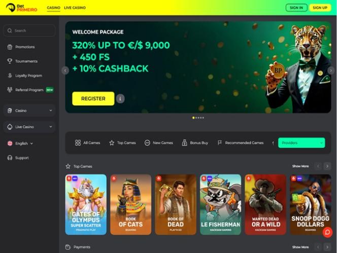 BetPRIMEIRO موقع مراهنات ضخم يقدم تشكيلة واسعة من ألعاب الكازينو، بما في ذلك ماكينات القمار بأموال حقيقية، وألعاب الموزعين المباشرين، وألعاب الاختراق، وألعاب الطاولة، بالإضافة إلى مجموعة شاملة من خيارات المراهنات الرياضية. يدعو الموقع اللاعبين من ألمانيا وكندا وأيرلندا إلى موقعه الإلكتروني، واعدًا إياهم بتجربة لعب متكاملة تضم مجموعة متنوعة من الألعاب، ومكافآت سخية، وعروضًا ترويجية مميزة، وإمكانية استخدام العملات المشفرة.