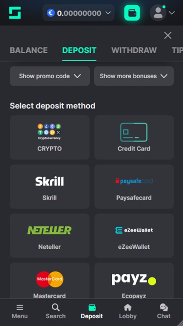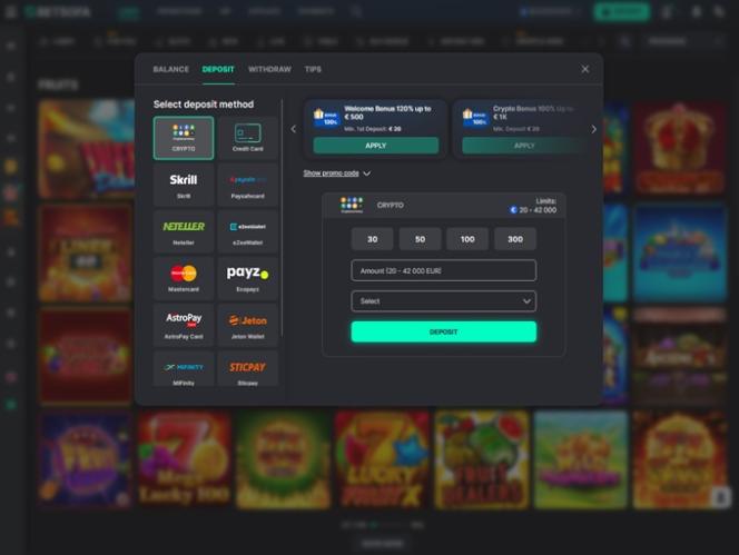 هناك مجموعة واسعة من طرق المعاملات المصرفية التي يمكن استخدامها للإيداع والسحب، بما في ذلك بطاقات الائتمان والخصم، والخدمات مثل Skrill وNeteller، والعملات المشفرة مثل Bitcoin وEhtereum وLitecoin مدعومة أيضًا هنا.