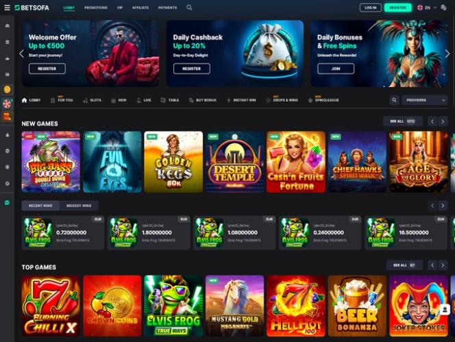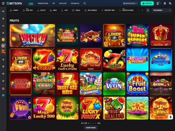 تحتوي مكتبة كازينو BetSofa على آلاف الإصدارات من ماكينات القمار بالفيديو ، بالإضافة إلى قسم الألعاب الرياضية، وألعاب الطاولة، وألعاب الموزع المباشر.