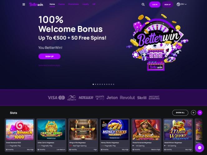 لنلقِ نظرة على عروض BetterWin ومعرض الألعاب المتاحة. هناك أسماء مرموقة في مجال ألعاب الإنترنت تُزوّد هذا الكازينو بالألعاب. تتضمن هذه العلامة التجارية محتوى من Evolution Gaming وMicrogaming وNetEnt وNovomatic وPlay'n GO وSpinomenal، بالإضافة إلى ما يقارب مئة شركة أخرى لتطوير برامج كازينوهات الإنترنت.
