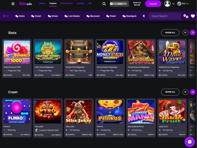 هناك العديد من الفئات الجذابة، بما في ذلك ماكينات القمار، والكراش، والألغام، والموزع المباشر، والبلاك جاك ، والنرد، والروليت ، ودراجون تايجر ، والبينغو، وسكراتش، وألعاب الطاولة، وغيرها. هذه علامة تجارية صديقة للعملات المشفرة، وستتمكن هنا من تجربة العديد من ألعاب العملات المشفرة، واستكشاف بقية مكتبة المقامرة، ولكن عليك أولاً إنشاء حساب لاعب.