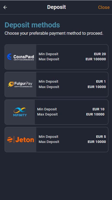 أما بالنسبة لخيارات الدفع، فالخيارات محدودة نوعًا ما، ولكنها تدعم العديد من العملات. كما أن وقت المعالجة أطول قليلًا، وحدود السحب أقل من متوسط القطاع.