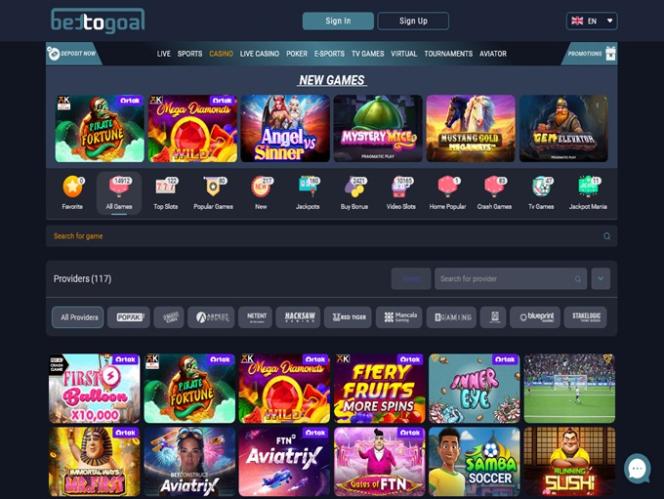 أما بالنسبة للاستوديوهات، فيتعاون كازينو Bettogoal مع Vivo Gaming وSpinomenal وPariplay وHabanero وNolimit City وغيرها الكثير. وهذا يؤكد مرة أخرى أن مجموعة المغامرات التي يقدمها جديرة بالملاحظة.