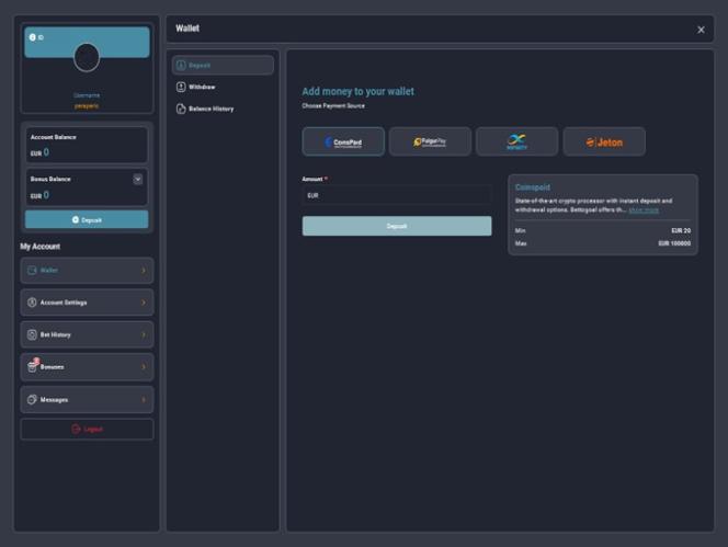 علاوةً على ذلك، يُمكن للاعب طلب ثلاث عمليات سحب أسبوعيًا (من الإثنين إلى الأحد)، حيث تُطبق رسوم معالجة على المبالغ التي تصل إلى 100 يورو. أما المبالغ التي تتراوح بين 100.01 يورو و1000.00 يورو، فتُطبق عليها رسوم معالجة قدرها 15 يورو، بينما تُطبق رسوم معالجة على المبالغ التي تتراوح بين 100.01 يورو و1000.00 يورو، وتبلغ 25 يورو.
