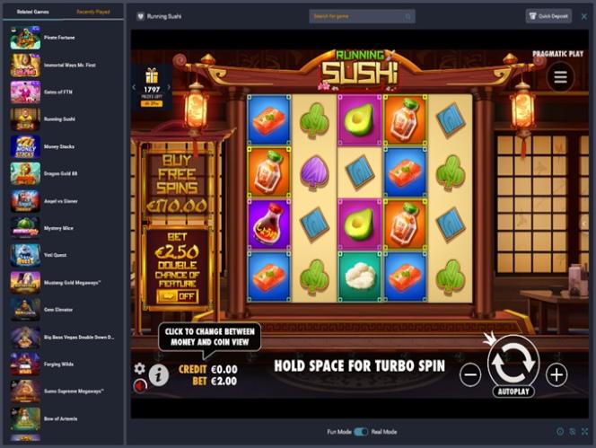 تنقسم المجموعة إلى ألعاب فيديو سلوتس وألعاب كلاسيكية، وهي مناسبة للاعبين الذين يفضلون التصميم التقليدي ، وكذلك لمن يفضلون المغامرات المستقبلية. تتميز اللعبة بوفرة المواضيع والميزات. يتوفر وضع التجربة للمستخدمين غير المسجلين.برنامج نقاط المنافسة