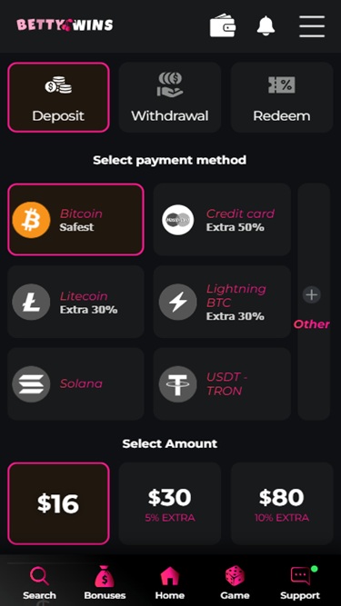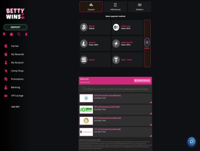 بالإضافة إلى ذلك، تتميز العلامة التجارية بمتجر مكافآت خاص بها، حيث يمكن للاعبين استخدام النقاط المجانية لشراء جوائز ومكافآت إضافية، مثل المكافآت والدورات المجانية. من الواضح أن كازينو BettyWins يسعى لمكافأة مستخدميه الدائمين، وهذا أمرٌ سيُقدّره كل لاعب.