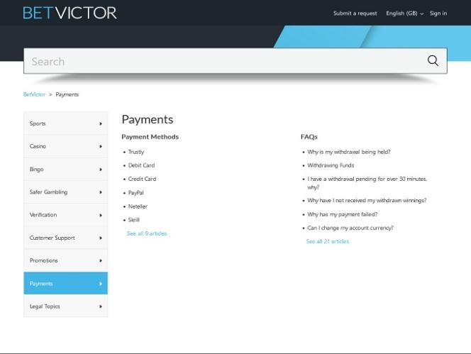 خيارات الخدمات المصرفية في Betvictor Casino Canada