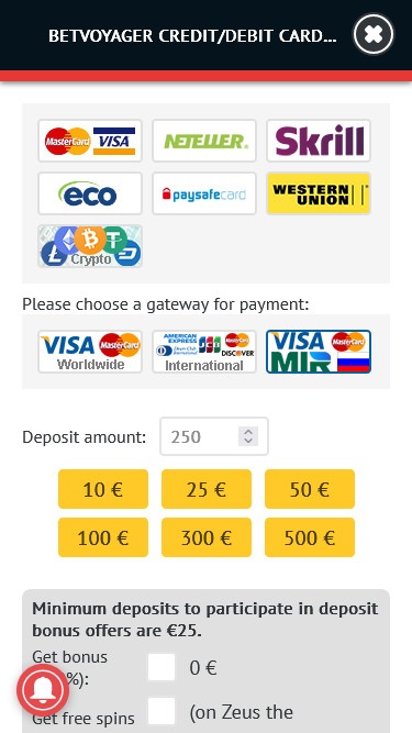 خيارات الخدمات المصرفية في BetVoyager Casino