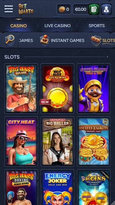 بالإضافة إلى تجارب الموزع المباشر التقليدية، سيتمكن اللاعبون في Betwarts أيضًا من الوصول إلى مجموعة رائعة من عروض ألعاب الكازينو المباشرة مثل Crazy Time، وCrazy Balls، وFunky Time، وIce Fishing، وLightning Storm، وAgent Spinity، وMonopoly Live، وAdventures Beyond Wonderland.