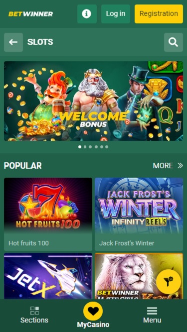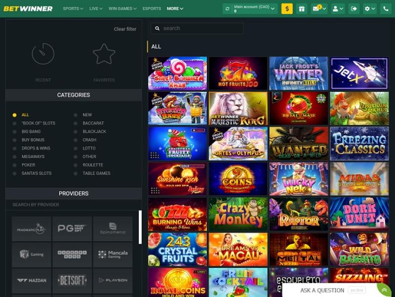 كازينو BetWinner مدعوم بواسطة Playtech, BetSoft, 1x2gaming, Amatic Industries, Espresso Games, Evolution Gaming, Ezugi, Genesis Gaming, Habanero Systems, HO Gaming, iSoftBet, Novomatic, Oryx, Play'n GO, playson, Quickspin, Rival, Thunderkick, Vivo Gaming, WM, Endorphina, Wazdan, Realistic Games, GameArt, Arrows Edge, Booming Games, Gameplay Interactive, Pragmatic Play, Nolimit City, Red Tiger Gaming, ZEUS Services, Booongo, LuckyStreak, Spinomenal, Felix Gaming, Red Rake Gaming, Inbet Games, Xprogaming, Fugaso, Belatra Games, SYNOT Games, Kalamba, Mobilots, Revolver Gaming, Platipus Gaming, Skywind, Spinmatic, Spadegaming, BGAMING, Concept Gaming, Fazi, Evoplay, SA Gaming, OneTouch, Pocket Games Soft, Dreamtech Gaming, Gluck Games, Bunfox Games, CQ9 Gaming, Mascot Gaming, TVBet, NetGame Entertainment, DLV, Radi8 Games, Spearhead Studios, Swintt, ThunderSpin, Super Spade Games, TrueLab Games, Mancala Gaming, 7Mojos, SmartSoft Gaming, KA Gaming, Atmosfera, FilsGame, PureRNG, Holle Games, Caleta Gaming, Eurasian Gaming, Reevo, Wizard Games, Ash Gaming, Blueprint Gaming, CT Interactive, EveryMatrix, Greentube, Igrosoft, Pariplay, Tom Horn Gaming, Genii, RFranco Group, Mr Slotty, Reel Time Gaming, MGA, Authentic Gaming, BF Games, betiXon, Capecod Gaming, Iron Dog Studio, Aspect Gaming, Apollo Games, RubyPlay, Gamevy, NetGaming, High 5 Games, GMW, Groove Gaming, PlayStar, Rarestone Gaming, Hacksaw Gaming, SimplePlay, Triple Cherry, Absolute Live Gaming, Charismatic, Lotto Instant Win, Onlyplay, FastSpin, Armadillo Studios, Lucksome Gaming, Gamebeat, FlipLuck, Playgon, Dragoon Soft, Leap Gaming, GoldenRace, Aviatrix, Winfinity, 3 Oaks Gaming, LiveG24, Funky Games, 1spin4win, 5Men Gaming, Gaming Corps, BetSolutions, Reel Kingdom, JVL, Bigpot Gaming, PlayAce and ABXplay والألعاب مدعومة عبر منصة ويب. هذا يعني أنه ما عليك سوى زيارة موقع المجموعة الإلكتروني، بدلاً من تنزيل أي برنامج. تصميم الكازينو وألوانه مشابهان جدًا لـ bet365، ولكنه عملي. كما يدعم المراهنة عبر الهاتف المحمول، مما يتيح لك المراهنة على هاتفك الذكي أو جهازك اللوحي.