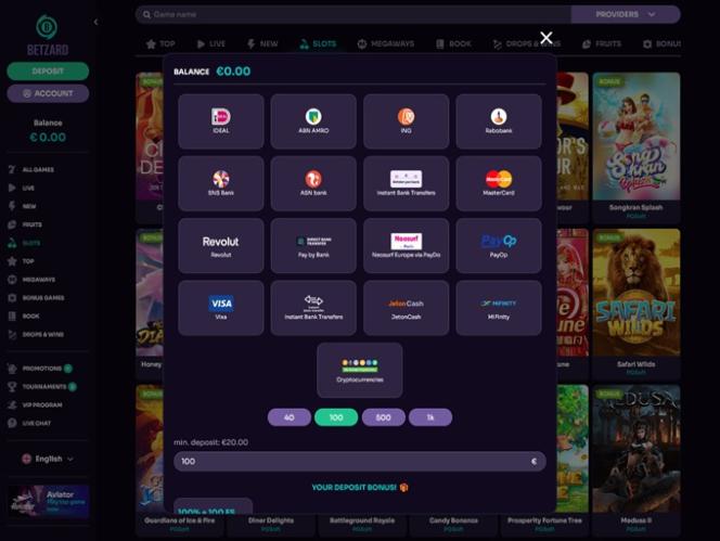 من المؤكد أنه بغض النظر عن نطاق اختصاص المقامرة الذي تتبعه، ستجد في كازينو بيتزارد خيارات متنوعة للإيداع والسحب . يوفر أمين الصندوق في الكازينو خيارات واسعة الاستخدام، وسواءً كنت تفضل الطرق التقليدية أو انتقلت إلى المقامرة بالعملات المشفرة، فستجد خيارات متعددة متاحة.