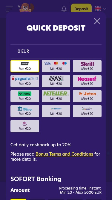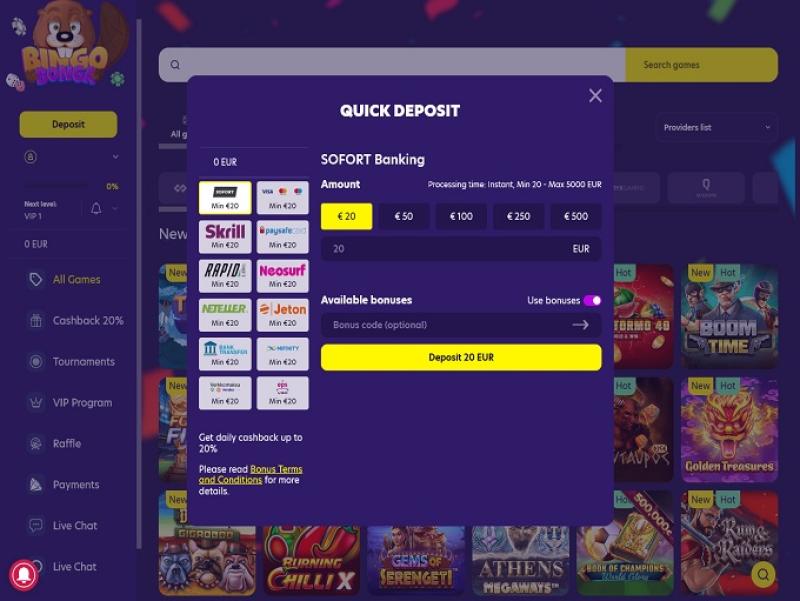 خيارات الخدمات المصرفية في Bingo Bonga Casino