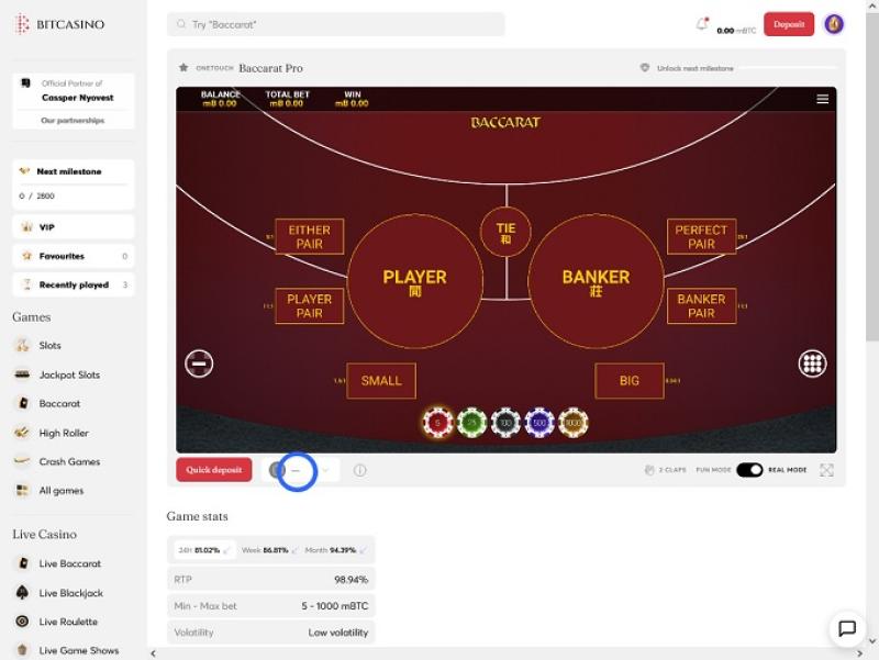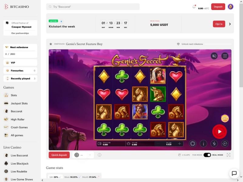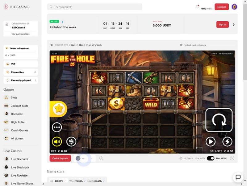 يُعد BitCasino.io أحد مواقع المراهنات الإلكترونية القليلة التي تُركز على استخدام عملة البيتكوين الافتراضية فقط. هذا الكازينو مرخص في كوراساو، ويُمكّن اللاعبين من لعب الألعاب بأمان دون الحاجة إلى معلومات شخصية تُذكر. يُفضله اللاعبون عادةً لما يوفره من مكتبة ألعاب ضخمة، بالإضافة إلى سرعة معاملاته المالية، والتي تُدفع (كما هو متوقع) حصريًا بالبيتكوين.