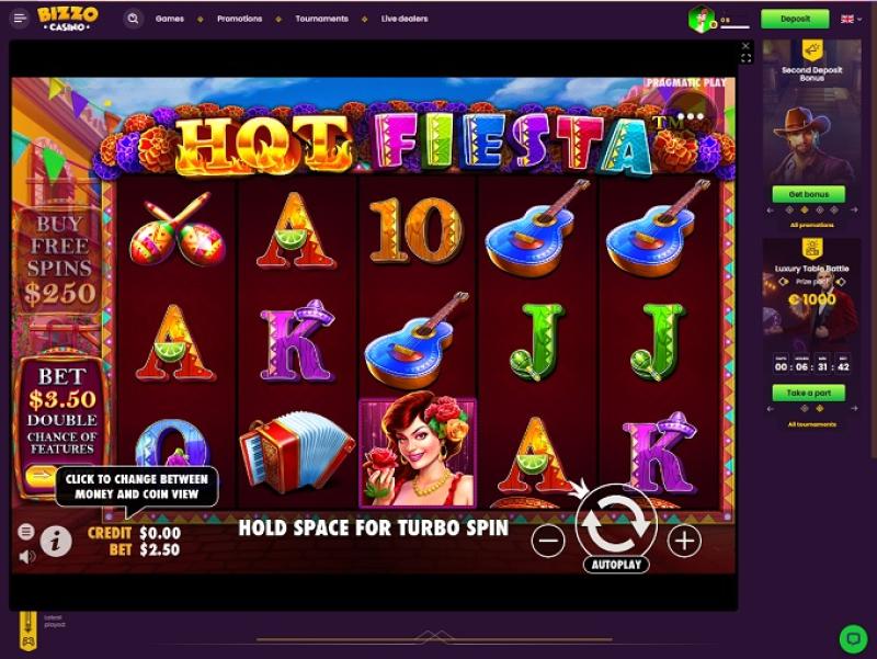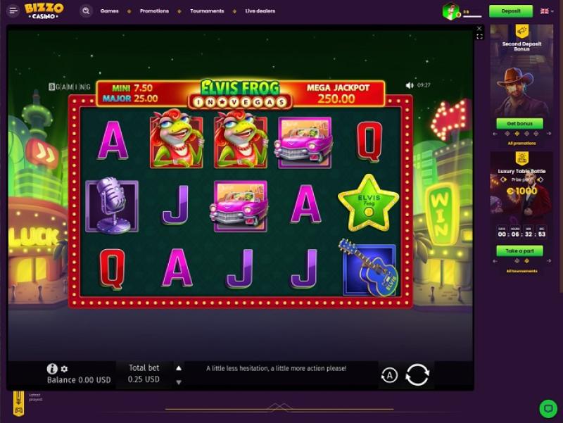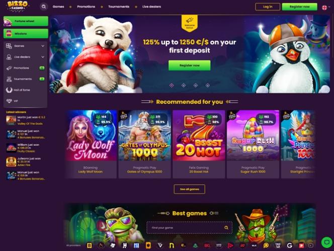 في حالة Bizzo، فإن القائمة الطويلة لموردي الكازينو جعلت قسم الفتحة مليئًا بالعناوين الأعلى تصنيفًا: Cazombie، It's a Joker، 777 Spinbox، Elvis Frog in Vegas، Hot & Spicy، Johnny Cash، Book of Eye، Assasin Moon Hyper Hold، Mechanical Clover، 100 Joker Staxx 100 Lines، Take Olympus، Startup Valley، Africa Cold 2 Treasure Way، #buyBonus of Maya، Book of Cats، Wolf Power Hold and Win، Moon Sisters: Hold and Win، 3 Coins، Book of Cai Shen، Book of Divine، Book of Tribes Reloaded، Buffalo Rampage، Fire in the Hole xBomb، Four Lucky Diamonds، Kitsune's Scrolls Expanded Edition، Egyptian Dreams Deluxe، Jellyfish Flow، Knockout Football، Knockout Football Rush، London Hunter، Magic Oak، Presto!، Pumpkin Patch، Santa's Village...