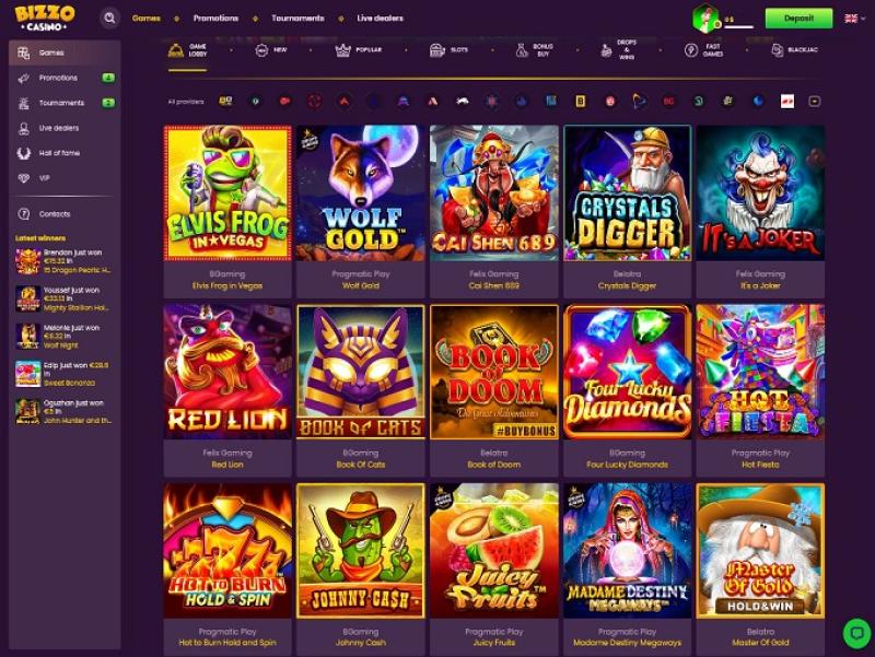 في Bizzo، كما ذكرنا سابقًا، ستجد ما يناسبك. يمكن للاعبين استخدام شريط بحث مركزي للعثور على لعبتهم المفضلة حسب اسمها، أو تصفح فئات الألعاب. يقدم الكازينو مجموعة كاملة من ألعاب الكازينو على الإنترنت.