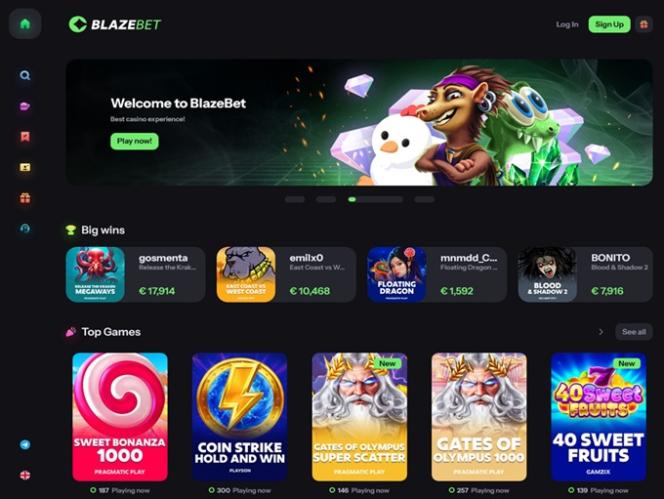 تأسس كازينو BlazeBet عام ٢٠٢٤، وهو كازينو إلكتروني يرحب باللاعبين من فرنسا والسويد والدنمارك والنرويج وفنلندا وأيرلندا وبلجيكا. يركّز بشكل رئيسي على تقديم ألعاب كازينو عالية الجودة، مثل ماكينات القمار بأموال حقيقية، والموزعين المباشرين، وألعاب الطاولة، ومجموعة مختارة من ألعاب الـ Crash. كما تشتهر العلامة التجارية بخطة ترويجية فعّالة مع العديد من المكافآت والحوافز.