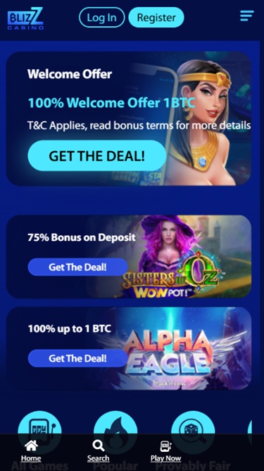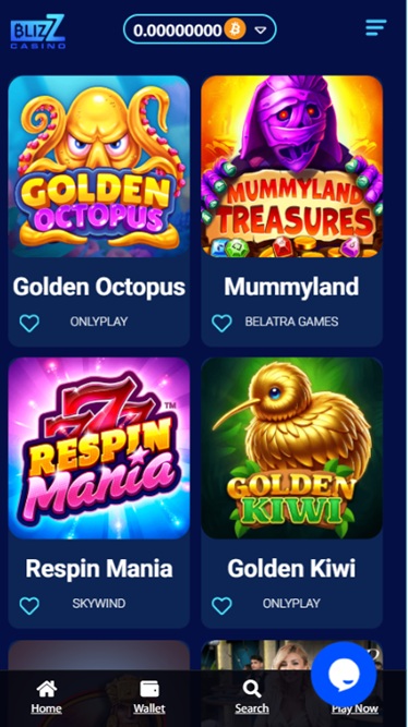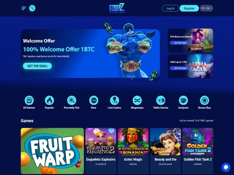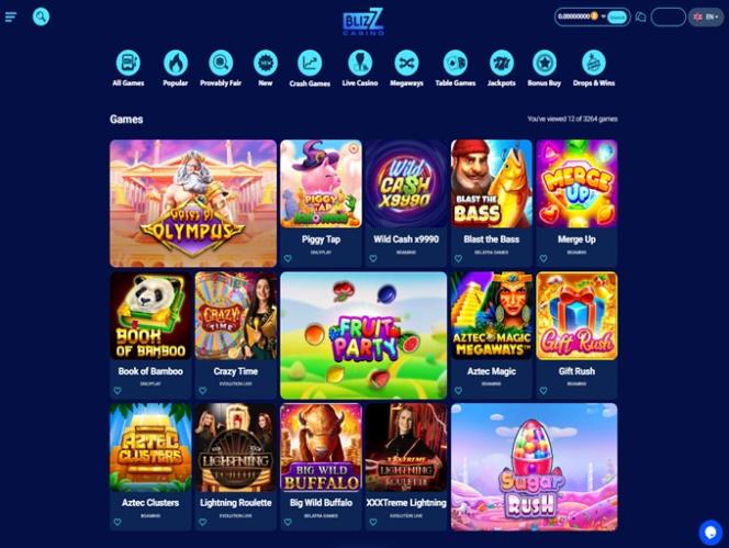تم تنظيم مكتبة الألعاب الغنية في أقسام الكازينو والكازينو المباشر ، وهناك أيضًا سباقات وعروض ترويجية لتنشيط إقامة اللاعبين في كازينو Blizz.