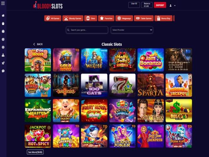 في حالة Bloody Slots، حصل موقع المقامرة على تراخيص من أكثر من 35 مطور برامج. ورغم أن العرض قد لا يكون الأكثر شمولاً، فمن المهم الإشارة إلى أن معظم مزودي البرامج الحاليين يُعتبرون من بين الأفضل في هذا المجال.