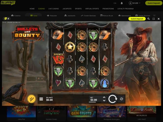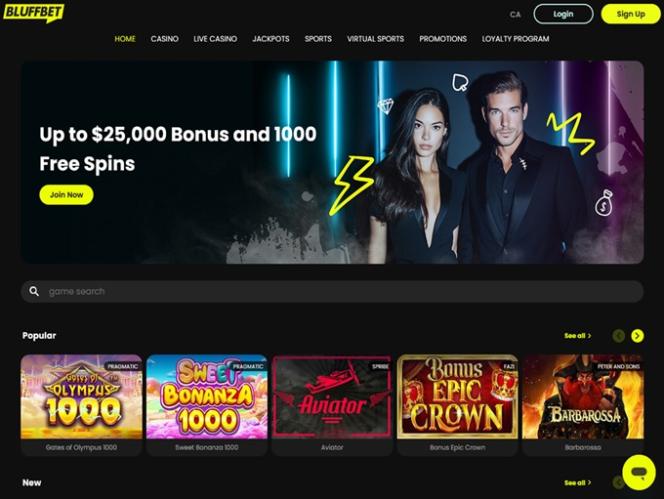 Bluffbet هو موقع مراهنات ومنصة مراهنات رياضية ضخمة، يقدم مجموعة واسعة من ألعاب الكازينو وخيارات المراهنات الرياضية. يرحب الموقع باللاعبين من كندا بشكل رئيسي، ويعدهم بتقديم مجموعة شاملة من خيارات الألعاب، بما في ذلك ماكينات القمار بأموال حقيقية، وألعاب كراش، وألعاب الموزعين المباشرين، وألعاب الطاولة، كل ذلك مع خطة ترويجية فعّالة مع مكافآت وجوائز متنوعة.