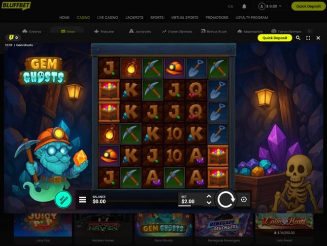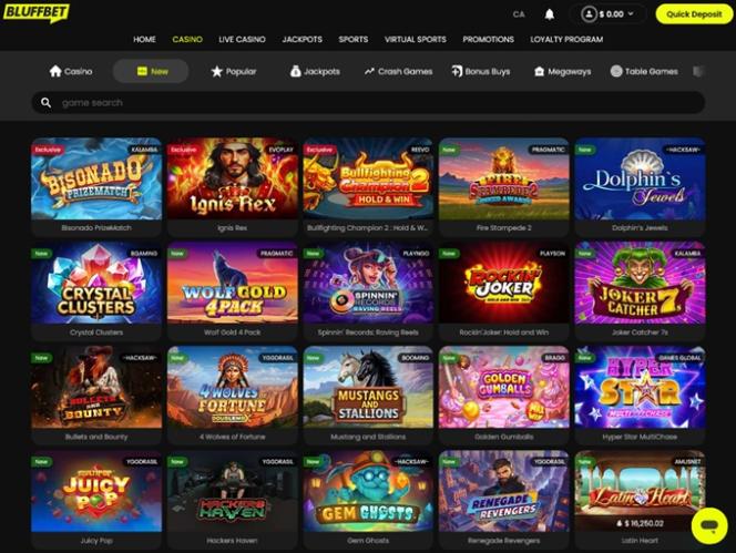 فيما يتعلق بأنواع وفئات الألعاب المحددة، تحتل ماكينات القمار بأموال حقيقية مكانة مرموقة بين خيارات اللاعبين في Bluffbet. وهذا ليس مفاجئًا، إذ نجح الكازينو في توفير تشكيلة رائعة من هذه الألعاب. ستتمكن من اللعب في جميع الفئات والأنواع التي يمكنك تخيلها تقريبًا، بما في ذلك مكافآت الشراء، والإصدارات الأحدث، وماكينات القمار الكلاسيكية، وألعاب Megaways، وHold n' Links، وألعاب الدفع العنقودي.