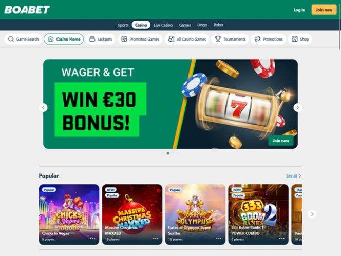 BoaBet كازينو إلكتروني شامل يُركز بشدة على مجموعته المتنوعة من ألعاب الكازينو، بما في ذلك ماكينات القمار الإلكترونية، والموزعين المباشرين، وألعاب الطاولة، والبينغو، والكينو، وبطاقات الخدش، بالإضافة إلى خيارات مراهنات رياضية متعددة. الموقع متاح للاعبين من تايلاند، وفيتنام، والمجر، والنرويج، وكرواتيا، وكندا، ويدعوهم لتجربة جميع الألعاب والاستفادة من العروض الترويجية والمكافآت المجزية.