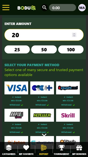 خيارات الخدمات المصرفية في Bodu88 Casino