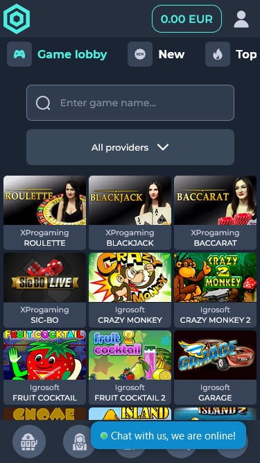 دعونا نلقي نظرة على ردهة اللعبة: الروليت، البلاك جاك، الباكارات، سيك بو، القرد المجنون، القرد المجنون 2، كوكتيل الفواكه، كوكتيل الفواكه 2، المرآب، القزم، الجزيرة، الجزيرة 2، لاكي هونتر، جنية اليقطين، القرصان، القرصان 2، متسلق الصخور، المقيم، الحياة الحلوة، الحياة الحلوة 2، الفواكه المحترقة، الملك توت، السحر الخفي، لاكي 7، الجواهر الملكية، كين هاوس، إهتيادا، الساحرة المحظوظة، جاك ساروبوس، فاست كولت، كاي شين، البحث المحظوظ، خزانة النبيذ، سيمفوماجيك، ركن الدب، هونغ لونغ، قوة أميكار، فروتون دون، إلداريو، جان جان، سبايسي فلور، روداكوب، بوكوبورا، الغابة الغامضة، الصوف الذهبي، شامبوهوا، كنز بوسيدون، سمكي بو، الذهب والحصان، بوزيجوزي، زومبازي، توباتو، أوروكورن، كوت ماتي، كوفيتي، آلهة المتحولين، فامبيون، أكفاريكو، رغبة العروس، الهند الغامضة، رحلة بحرية ساخنة، عصابات نيويورك، أسرار الخيمياء، توروس، ميرميلون، توماتوب، حراس ويلكين، نكهة غريبة، ستار جونغ، عناصر الخيمياء، شبح فيليبسترز، حار إلى الأبد، دايزون، تاريخ الطيار، تينوتشكي، الذهب الاسكندنافي، القفز الكوني، حكايات الدهر الوسيط، خرافة الفطر، إنسان نياندرثيدا، درع فضي، ونش وعجلات، مكان رائع، فواكه التيتانيوم، حكاية الخشب، الثراء المزدوج، متع الحياة، فواكه الطوب، أرهاتيوس، فواكه زجاجية، ضباب أخضر، جلجل حبري، حديقة حيوانات عظيمة، كيتنبولت، ختم سريع، فايكينجار، أندار بهار، عهد الأقزام، الرجل المضاعف، الأسماك الطيبة، ببغاوات الكاريبي، يانصيب لاكي، روبن هود و انتصارات سعيدة، أمنيات، الصفقة الكبرى، تجار الفضاء، سحق، 9 أسود...