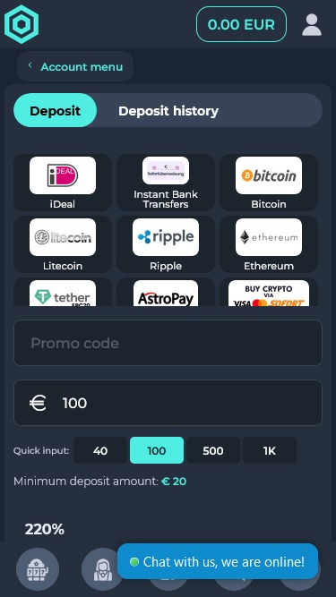 تدعم هذه العلامة التجارية الخدمات المصرفية الفورية، والتحويلات البنكية، وبطاقات الدفع، وغيرها من أنظمة الدفع الإلكترونية الموثوقة. إذا كنت تفضل الدفع بالعملات المشفرة، يمكنك أيضًا إجراء عمليات إيداع وسحب باستخدام العديد من العملات الرقمية، بما في ذلك بيتكوين، وإيثريوم، ودوجكوين، ولايتكوين، وغيرها.