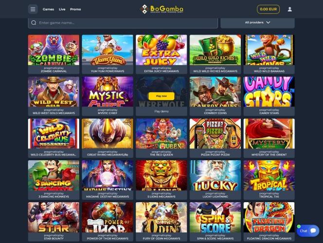 تتعاون BoGamba مع العديد من استوديوهات الألعاب الإبداعية مثل KA Gaming و Caleta Gaming و Spinomenal و Yggdrasil وأعضاء آخرين ذوي سمعة طيبة في الصناعة يقدمون بعضًا من أفضل ألعاب الكازينو عبر الإنترنت الموجودة هناك.