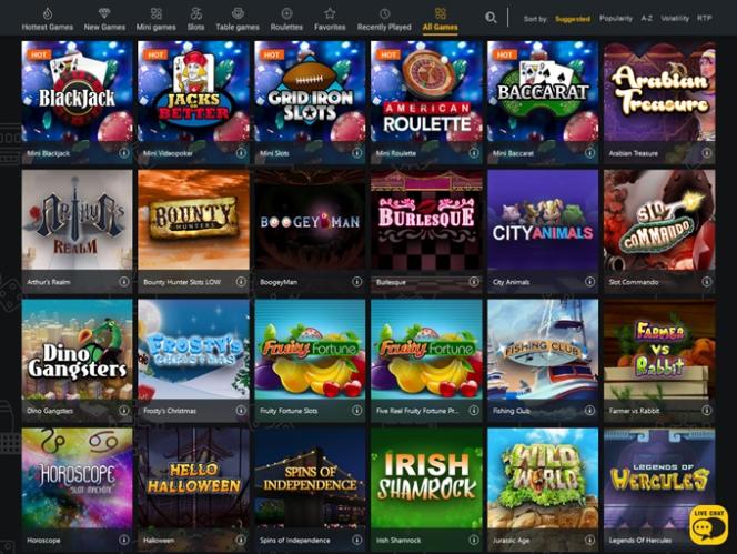 ألعاب الطاولة: الباكارات، دبل إكسبوجر، بلاك جاك متعدد الأيدي، بلاك جاك، بلاك جاك سينجل هيد، بلاك جاك الإسباني، سويتش بلاك جاك، كرابس، بوكر الثلاث بطاقات، بوكر الكاريبي، ليت إت رايد، بوكر باو جاو، الروليت الأمريكية، الروليت.