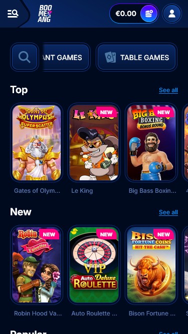 يُعدّ Boomerang Bet كازينو وموقع مراهنات رياضية على الإنترنت يدعم العملات الرقمية ، ويُقدّم مجموعة واسعة من ألعاب الكازينو والأحداث الرياضية. سواء كنت من مُحبي ألعاب السلوتس، أو ألعاب الطاولة مثل البلاك جاك والروليت والباكارات ، أو حتى من عشاق الرياضة، فمن المُرجّح أن تجد ما يُناسب ذوقك هنا.