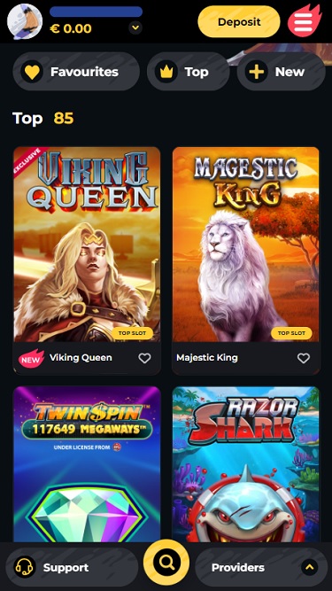 مكتبة ألعاب القمار مليئة بالعناوين الشعبية، ولكن يتم تحديثها بانتظام أيضًا بإصدارات جديدة: Hallow Pick، Super Sevens & Fruits 6 Reels، 8 Golden Skulls of Hally Roger - Megaways FIREPOT، Treasures of Lion City، Mystery of Eldorado، Retro Galaxy، Bushi Sushi، Bankin` Bacon، Dark Reels، Atlantis Cash Collect، Halloween Fortune Scratch، Full Moon - Wild Track، Retro Pumpkin، Gator Gold Gigablox، XO Manowar، Win Sum Dim Sum، Dragonz، Arthur`s Gold، Amber Sterling`s - Mystic Shrine، Royale With Cheese Megaways، Book of Elixir، Book of Hor، Conquestera، Dangerous Monster، Fortune Five، Fortune Three، Racing Lion، Throne of Camelot، Tribe، Atomic Reactor، Lord Fortune 2 Hold and Win، Brides of Dracula Hold & Win، Story of Hercules - Expanded Edition، Gangster`s Gold، Wild Toro II، Bloxx Zeus، Super-Heated Sevens، Legend of the Sword، Winfall in Paradise، Kingdom Treasures، The Fruit Megaways، Loki Lord of Mischief، إصدار عيد الميلاد Miss Cherry Fruits، White Rabbit…برنامج نقاط المنافسة