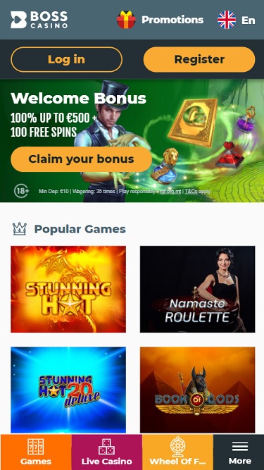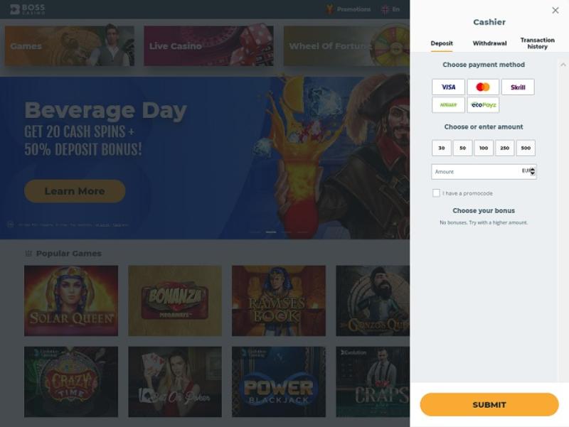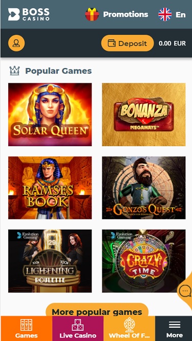 بالإضافة إلى ألعاب الكازينو القياسية، سيجد اللاعبون أيضًا كازينو مباشرًا كاملًا في Boss.