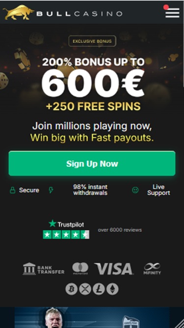 لم يحصل Bull Casino على تأييد من Wizard of Odds.