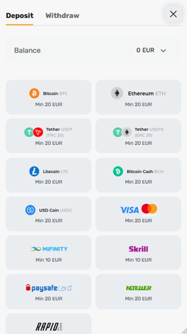 بالإضافة إلى العملات التقليدية، سيتمكن اللاعبون من إجراء عمليات الإيداع والسحب بعملات Bitcoin وBitcoin Cash وEthereum وTether وUSD Coin وLitecoin وغيرها.