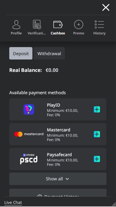 - يحق للكازينو أن يطلب إثبات السن أو إجراء عملية تحقق في أي وقت عن طريق مطالبة المقامرين بتقديم مستندات هوية شخصية وإثباتات العنوان والمدفوعات أو أي مستند إضافي آخر قد يكون مطلوبًا لإكمال الإجراء.