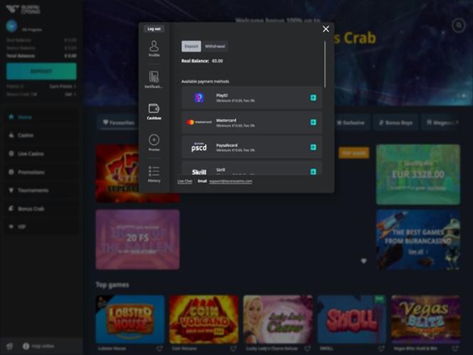 خيارات الخدمات المصرفية في Buran Casino