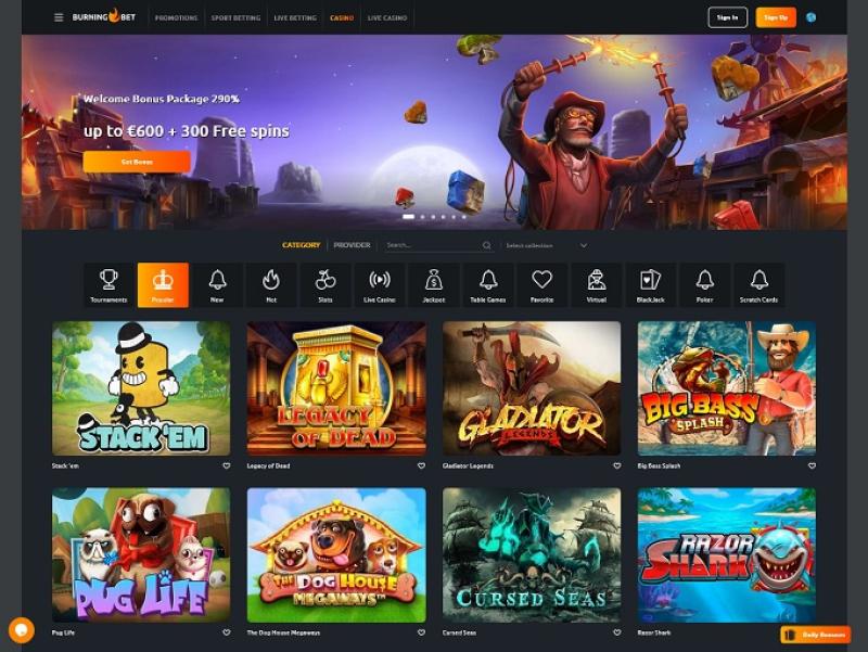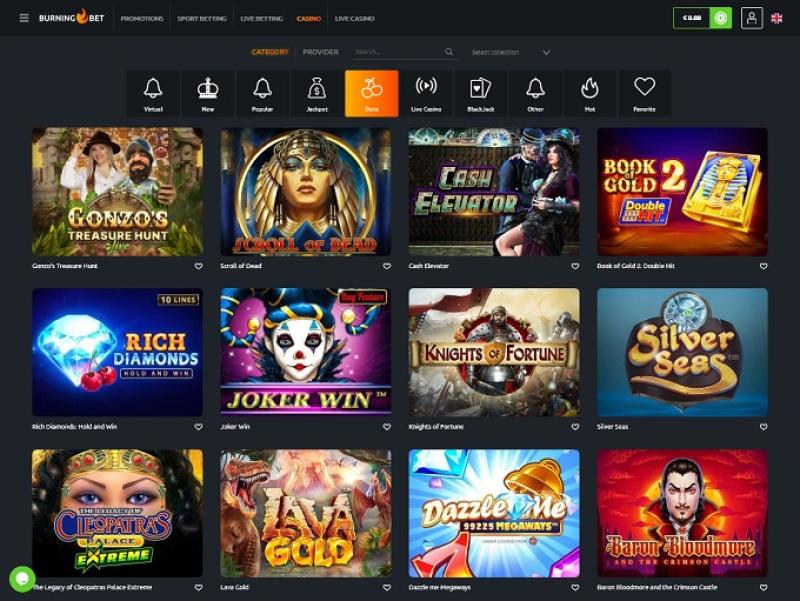 كما هو مُلمّح في المقدمة، يتعاون كازينو BurningBet مع شبكة واسعة من مُزوّدي الألعاب. بفضل شراكاته الناجحة، يُقدّم كتالوجه تشكيلةً واسعةً من الألعاب. من بين الأسماء التي تُمثّل منتجاتها جزءًا من مجموعة الألعاب Play'n GO وPragmatic Play وPush Gaming و Yggdrasil وELK Studios وغيرها.