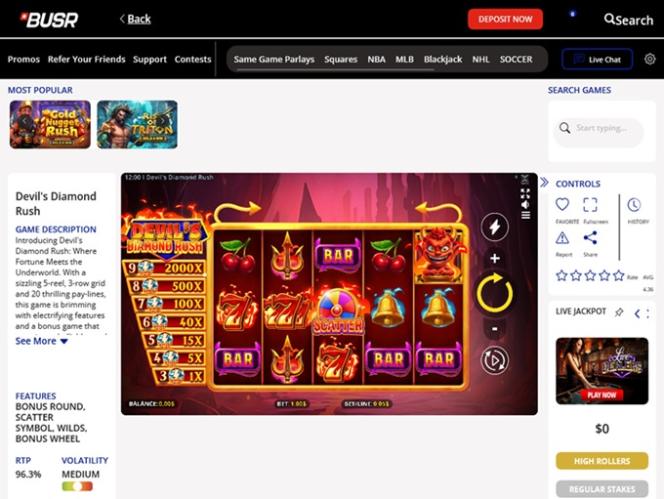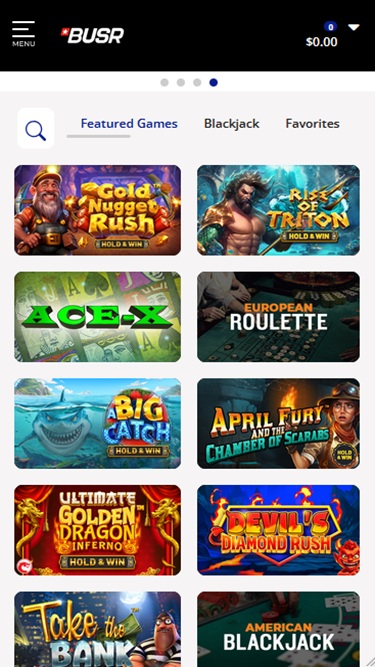 كما نعلم جميعًا، فإن قسم ألعاب السلوتس هو المفضل لدى اللاعبين، وقد حرصت BUSR على الاستجابة بشكل جيد لمتطلبات المقامرين من خلال تقديم مكتبة غنية من ألعاب السلوتس عبر الإنترنت للاعبين من الولايات المتحدة الأمريكية ، والتي تتضمن الألعاب الكلاسيكية القديمة، بالإضافة إلى الألعاب الجديدة والإصدارات الحديثة.