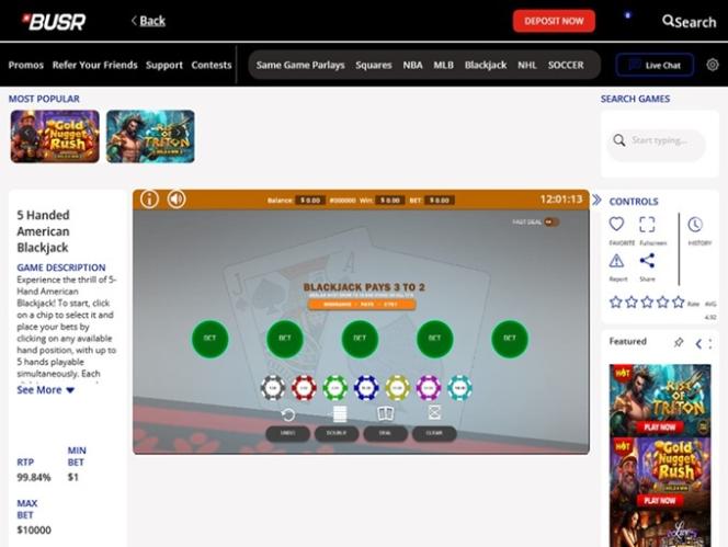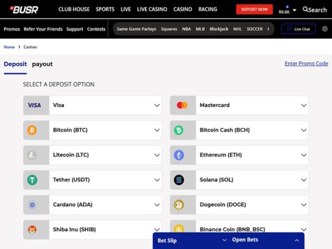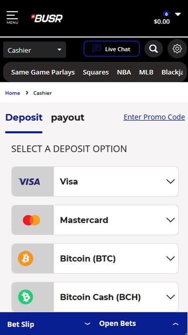على الرغم من أن تركيزنا في هذه المراجعة ينصب بشكل أكبر على ألعاب الكازينو، إلا أن BUSR يوفر قسمًا قويًا للمراهنات الرياضية. لذا، إذا كنت مهتمًا بالرياضة، فإن خيارات المراهنات الرياضية في NCAAB وNFL وPROPS وNBA وNHL وMMA وسباق الخيل وغيرها من الخيارات المناسبة للولايات المتحدة الأمريكية في انتظارك.