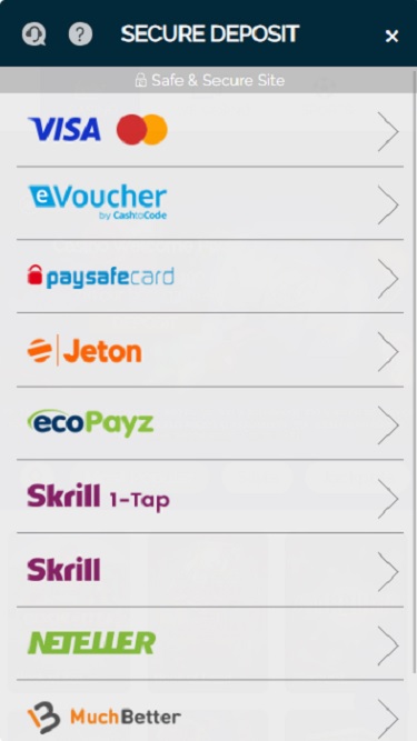 فيما يتعلق بطرق الدفع على Bzeebet، لن تتمكن من الإيداع عبر العملات المشفرة، مما قد يُنفّر بعض اللاعبين، ولكن يمكنك استخدام بعض الخيارات الأكثر شيوعًا مثل Visa وMastercard وSkrill وEcopayz وAstropay. كما يمكنك الإيداع عبر Neteller إذا رغبت في ذلك.