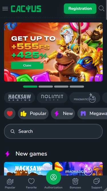 في كازينو كاكتوس، ستتمتع بمجموعة رائعة من ألعاب الكازينو ومُزوّدي البرامج. حصل موقع المقامرة على تراخيص من أكثر من 80 مُطوّر برامج مُتميّز ، يُعتبر معظمهم من بين الأفضل في هذا المجال، ويشتهرون بإنتاج ألعاب عالية الجودة.