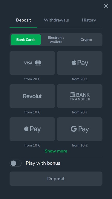 - يقبل الكازينو العملات الورقية والعملات المشفرة.