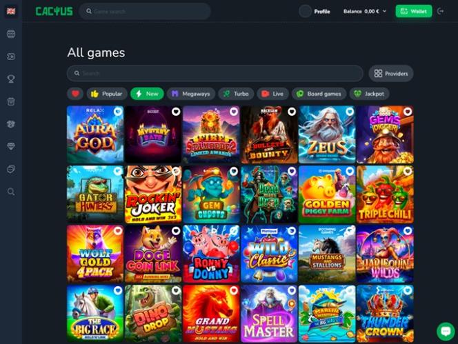 تأسس كازينو كاكتوس عام ٢٠٢٥، وهو منصة مقامرة إلكترونية حديثة تُقدم مجموعة شاملة من ألعاب الكازينو، بما في ذلك ماكينات القمار بأموال حقيقية، وألعاب الموزع المباشر، وألعاب الطاولة، وألعاب الكارثة الفورية. يقبل الكازينو لاعبين من كندا وبولندا وألمانيا، مُقدمًا مجموعة واسعة من خيارات الألعاب، والعروض الترويجية، والمكافآت، والجوائز الكبرى، بالإضافة إلى توفر العملات المشفرة.