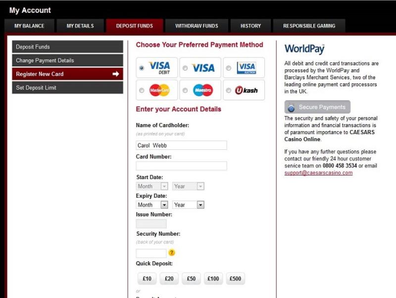مثل جميع مشغلي الألعاب المسؤولة، يوفر كازينو سيزرز صفحة كاملة حول الألعاب المسؤولة للاعبيه. تقدم الصفحة معلومات حول تحديد سلوكيات المقامرة الإشكالية ومكافحتها، كما يوفر الكازينو نظامي الاستبعاد الذاتي وحدودًا للمراهنة يمكن للاعبين تطبيقها لمنع حدوث أي مشكلة. خدمة العملاء متاحة على مدار الساعة عبر الهاتف والبريد الإلكتروني والدردشة المباشرة. الدعم متاح على مدار الساعة طوال أيام الأسبوع، ويمكن للاعبين طلب المساعدة متى احتاجوا إليها. يتمتع فريق العمل بالخبرة اللازمة والقادر على الإجابة على أي استفسارات أطرحها عليهم بخصوص مختلف ميزات الموقع. يشفر كازينو سيزرز معلومات اللاعبين باستخدام تقنية تشفير SSL 128 بت، والتي تستقبل بيانات اللاعبين وتشفرها أثناء إرسالها بين جهاز الكمبيوتر وخوادم الكازينو. تُعد هذه ميزة أمان أساسية، ويسعدنا أن كازينو سيزرز قد طبقها للاعبيه.الشروط والأحكام، الخدمات المصرفية