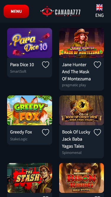 بعض عناوين ماكينات القمار المميزة على الإنترنت هي: ماكينات القمار: Para Dice 10، Jane Hunter and the Mask Of Montezuma، Greedy Fox، Book Of Lucky Jack Baba Yaga's Tales، The Stash، Bison Rising Megaways Build A Bonus، 9 Masks of Gold، Kingdom Of The Dead، Kitsune Sakura Fortune، Grizmeralda، Imperial Quest، Angry Dragons، Stacking Bison، Naughty Wukong، Sweet Cocktail، Irish Weekend Bonus Buy، Crazy Ape، Video Blackjack، Golden Explosion، Speed Blackjack 15 Ruby، 100 Lucky Sevens، Speed Blackjack 16 Ruby، Jasmine Dreams، Speed Blackjack 17 Ruby، Keep 'Em Cool، Speed Blackjack 18 Ruby، Leprechaun Charms، Blackjack 71 Ruby، Joker's Charms Patrick's Day، Blackjack 72 Ruby، Midas Fortune، Blackjack 73 روبي، أكوام قوس قزح، بلاك جاك 74 روبي، ماين آند ميلت، روكيت تشيمب جاكبوت، 2023 هيت سلوت، دينو بي دي، الصيد المثالي، مصباح اللانهاية، الروليت النهائي، إكسكاليبور أنليشد، طوكيو باكارات، التعويذات والكنوز، بلاك جاك كلاسيك 73، كوين سترايك تمسك واربح 3x3، صيد سفن الصيد، كنوز غير محدودة، رويال جوكر تمسك واربح، البحار الملعونة، بركان ناب الذئب، شعلة المستذئب الأظلم، فرصة التنين، عصر التنانين ميني ماكس، عطلة نهاية الأسبوع الأيرلندية...